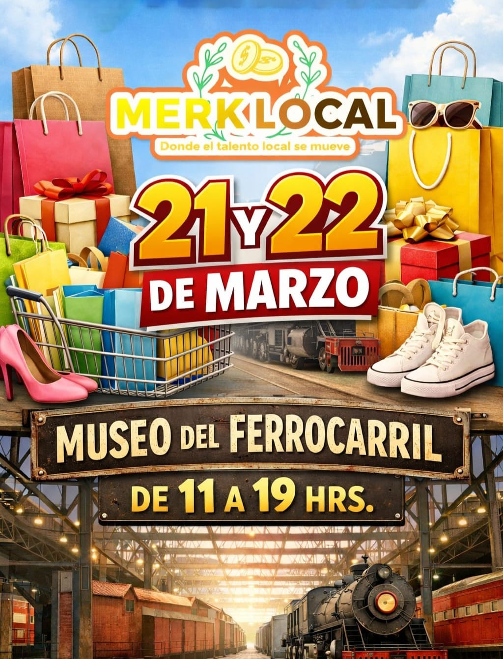 La Secretaría de Cultura de Gobierno del Estado invita al público en general a asistir al Merkalocal que se llevará a cabo los días sábado 21 y domingo 22 de marzo, en un horario de 11:00 a 19:00 horas, en las instalaciones del Museo del Ferrocarril “Jesús García Corona”, con entrada libre.