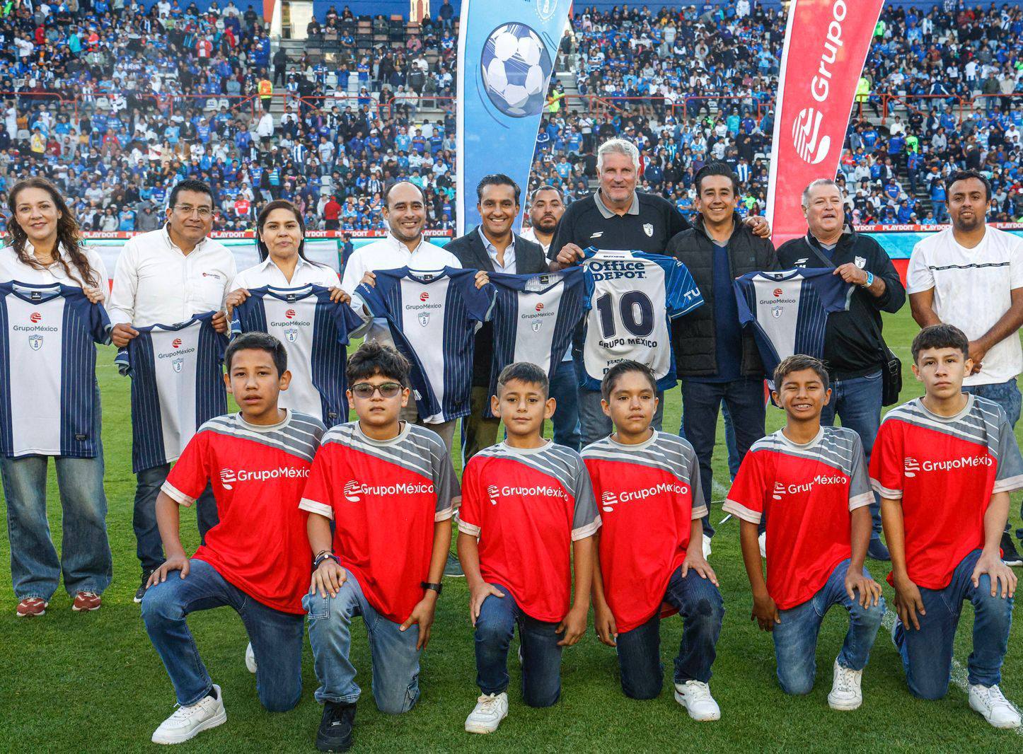 PACHUCA, HIDALGO, 14 DE SEPTIEMBRE DE 2025.- En el marco del partido entre Tuzos y Cruz Azul, celebrado este fin de semana como parte de la Jornada 8 de la Liga MX, Grupo México y el Club de Fútbol Pachuca dieron inicio a una alianza estratégica para la creación de una Academia de Futbol con presencia en tres comunidades donde la empresa minera tiene operaciones, con el objetivo de fomentar el desarrollo integral de niñas, niños y jóvenes a través del balompié.