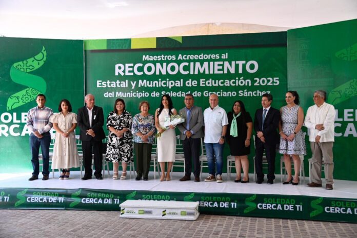 Con un mensaje de apoyo total y reconocimiento por una labor ardua en los salones de clase, el Día del Maestro se vivió en un ambiente agradable y cercano en Soledad de Graciano Sánchez, con un festejo a cargo del Alcalde, Juan Manuel Navarro Muñiz, quien entregó galardones a 11 docentes por su dedicada trayectoria escolar en favor de sus comunidades, además de externarles que las y los docentes son guías del futuro e impulsores de un desarrollo social íntegro en el municipio.