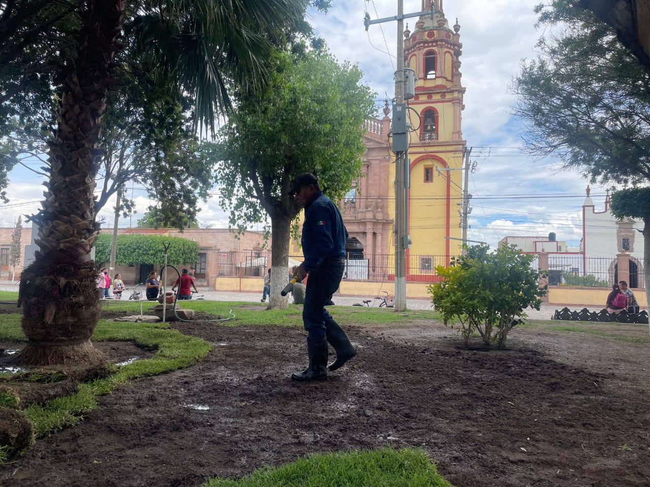 Se realizó una importante intervención en el Jardín Hidalgo de plantación de180 metros cuadrados de nuevo pasto, además de labores de mantenimiento.