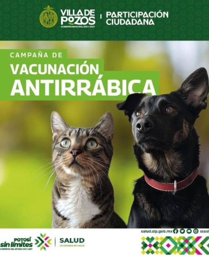 El Gobierno de Villa de Pozos, en coordinación con la Jurisdicción Sanitaria No. 1 llevará a cabo una campaña de vacunación antirrábica en las canchas de Residencial del Bosque, ubicadas frente a la escuela Secundaria Técnica No. 90 para prevenir la rabia transmitida por perros y gatos.