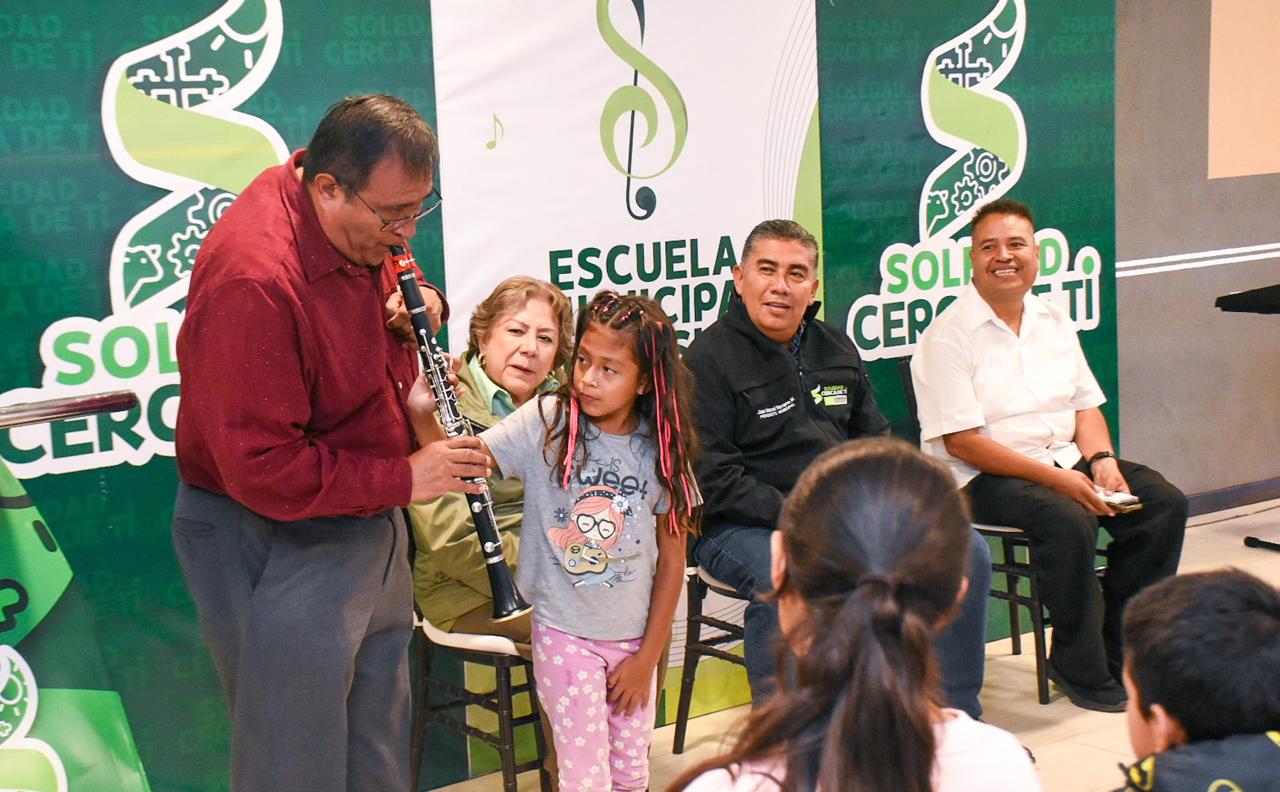 El edil invitó a las y los papás a acercar a sus hijos e hijas, con gustos e interés en la música, a inscribirse en las clases totalmente gratuitas, del instrumento de su preferencia, entre ellos, clarinete, piano, guitarra acústica, guitarra eléctrica, saxofón y violín, en las oficinas ubicadas en el Teatro y Centro Cultural de Soledad, en la colonia Rancho Blanco.