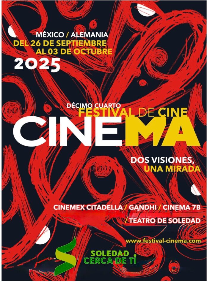 Soledad de Graciano Sánchez se consolida como un referente cultural de alcance internacional, al ser confirmada como sede del Festival de Cine México-Alemania “Cinema” y de la gira nacional de documentales Ambulante 2025, eventos que proyectarán al municipio como un punto de encuentro de la industria cinematográfica, acercando a las familias soledenses producciones de calidad mundial y reafirmando el compromiso del Alcalde Juan Manuel Navarro Muñiz, de posicionar a Soledad como un territorio cercano a su gente y promotor del arte, la educación y el esparcimiento social.