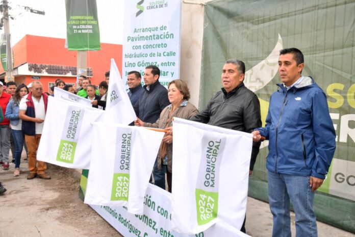 Juan Manuel Navarro Muñiz, Alcalde de Soledad de Graciano Sánchez, dio arranque a la pavimentación con concreto hidráulico de la calle Lino Gómez, en el tramo de Antonio Rodríguez a Ignacia Aguilar, en la colonia 21 de Marzo, una de las zonas limítrofes con la capital potosina que por años permaneció en el abandono y que hoy su administración atiende gracias a la coordinación con el Gobierno del Estado, con una inversión de más de 2 millones de pesos, provenientes del Fondo de Fortalecimiento Municipal, la obra beneficiará de manera directa e indirecta casi 3 mil habitantes, marcando un paso más en la transformación de Soledad.