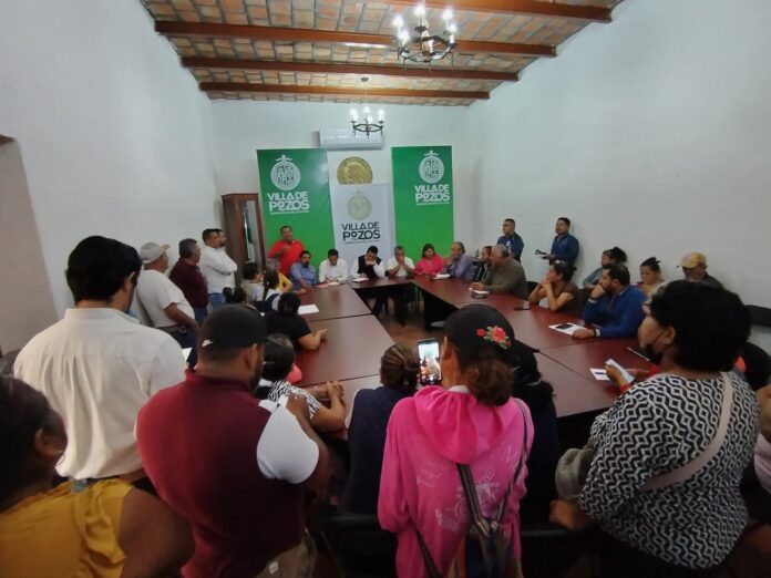 El Gobierno Municipal de Villa de Pozos, a través de la Dirección del Agua y en coordinación con la Comisión de Agua Potable, Alcantarillado y Saneamiento, sostuvo una mesa de trabajo con habitantes de la cabecera municipal con el objetivo de dar seguimiento puntual a la problemática del desabasto de agua en la localidad, por parte del Organismo operador Interapas.