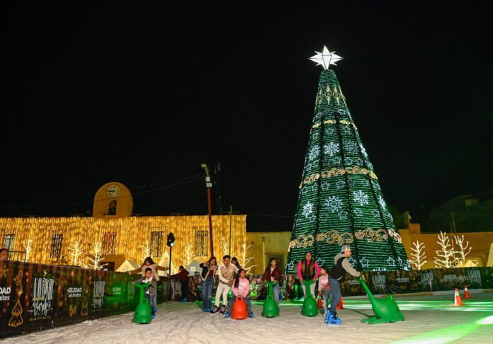 Con espacios gratuitos para la convivencia familiar y una de las postales más atractivas de la temporada, el Ayuntamiento de Soledad de Graciano Sánchez invita a las y los soledenses a seguir disfrutando de la pista de hielo y la Villa Navideña instaladas en la Plaza Principal, donde la iluminación artística y el Árbol de Navidad Monumental se han transformado en un escenario de ilusión y convivencia para niñas, niños, jóvenes y personas adultas comparten momentos de alegría, en un ambiente mágico que celebra la unión, la esperanza y la cercanía que distinguen estas fechas.