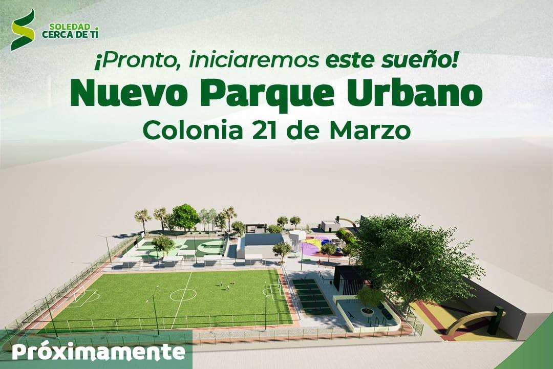 Juan Manuel Navarro Muñiz, Presidente Municipal de Soledad de Graciano Sánchez, confirmó que las familias de la colonia 21 de Marzo tendrán un nuevo espacio de recreación icónico y trascendental, un anhelo social que durante mucho tiempo no se había cristalizado: anunció la construcción de un Parque Urbano en la Plaza principal, la cual hoy luce en condiciones deplorables y dañadas. Este proyecto de infraestructura deportiva iniciará este martes 27 de enero.