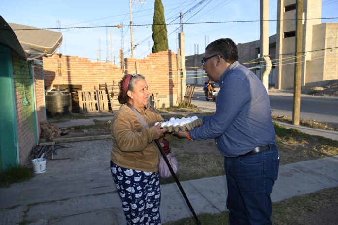 Juan Manuel Navarro Muñiz, Alcalde de Soledad de Graciano Sánchez, continuó este viernes con la entrega del programa alimentario emergente mediante la distribución de huevo como producto básico de alto valor nutricional, llevando este apoyo personalmente a los hogares de las colonias Nueve de Mayo, Primero de Mayo y Del Bosque, con una dinámica de cercanía con las familias y atención directa en territorio.