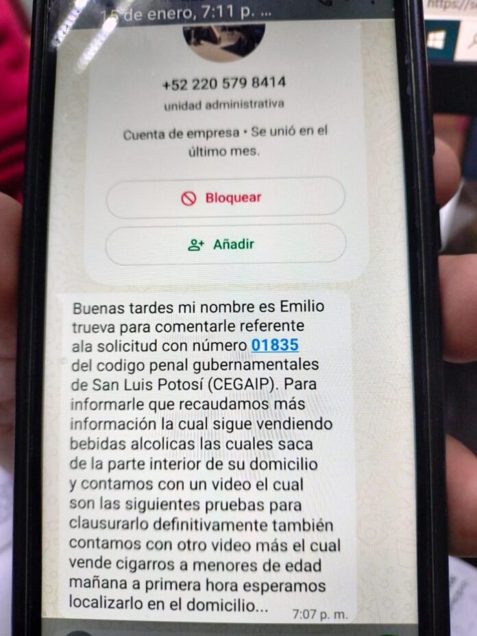 El Director de Comercio de San Luis Potosí, Ángel de la Vega Pineda, alertó a los comerciantes de la capital potosina sobre los mensajes que algunos recibieron desde un número de lada 202, correspondiente al estado de Puebla, en los que se les amenaza con sanciones o cierre de negocios.