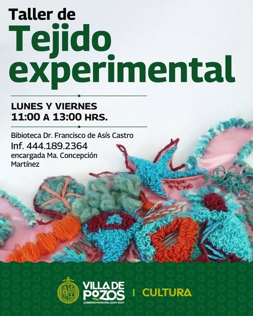 Con el objetivo de fomentar la creatividad y la expresión artística de las y los participantes, el Gobierno Municipal de Villa de Pozos, a través de la Dirección de Cultura, dio inicio al Taller de Tejido Experimental en la Biblioteca Municipal, un espacio diseñado para promover el aprendizaje, la innovación y el intercambio de saberes en torno a las técnicas textiles contemporáneas.