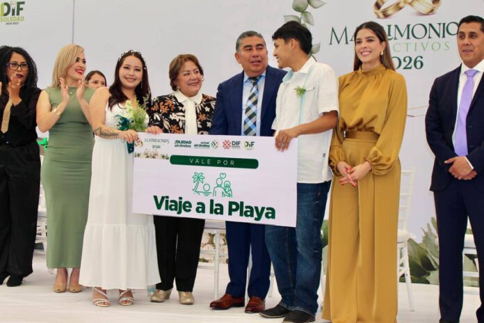 Entre nervios contenidos y sonrisas que no se podían ocultar, Gloria Edith Mendoza González y Ezequiel Guadalupe Hernández Rico tomaron la decisión de unir sus vidas convencidos de que el amor también se construye con pasos firmes y con respaldo; se conocieron en el trabajo en agosto de 2025, y con apenas medio año de noviazgo, decidieron casarse este 13 de febrero en los Matrimonios Colectivos 2026, impulsados por el Ayuntamiento de Soledad de Graciano Sánchez y el DIF Estatal, para comenzar una vida juntos, aprovechando una alternativa que les permitió formalizar su unión de manera gratuita, cercana y accesible.