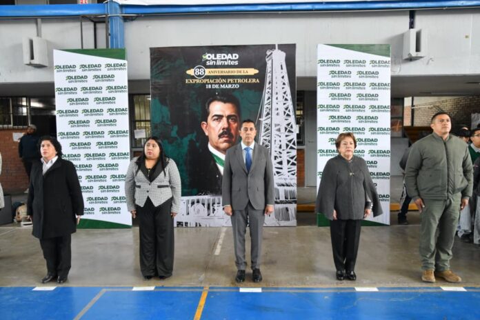 Al cumplirse 88 años de la Expropiación Petrolera de México, el Ayuntamiento de Soledad de Graciano Sánchez realizó una ceremonia cívica para conmemorar esta decisión histórica, social y económica que impactó al país, al representar un hecho de verdadera defensa y unidad nacional. La ceremonia se llevó a cabo en la secundaria «Graciano Sánchez Romo», con la participación de docentes, directivos, estudiantes y padres y madres de familia.