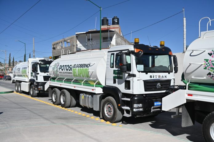 El Mandatario Estatal, explicó que el programa incluyó la compra de 40 pipas, a través de la Comisión Estatal del Agua (CEA), así como diálogo permanente con las Juntas de Mejora de cada colonia afectada, para acercar el agua potable a las y los potosinos que viven en las colonias donde más ha afectado la falta del líquido, para rellenar los aljibes de las casas.