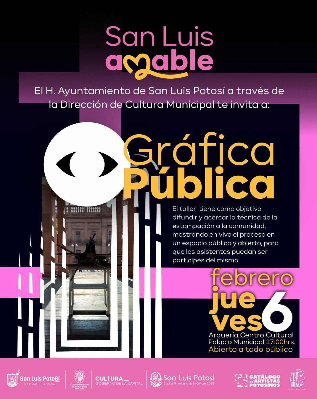 Esta iniciativa forma parte del programa Día a Día en la Cultura de la Dirección de Cultura Municipal del H. Ayuntamiento de San Luis Potosí y del Catálogo de Artistas Potosinos CAPO, reafirmando el compromiso con la democratización del arte y la consolidación del espacio público como un foro de encuentro y creación colectiva.