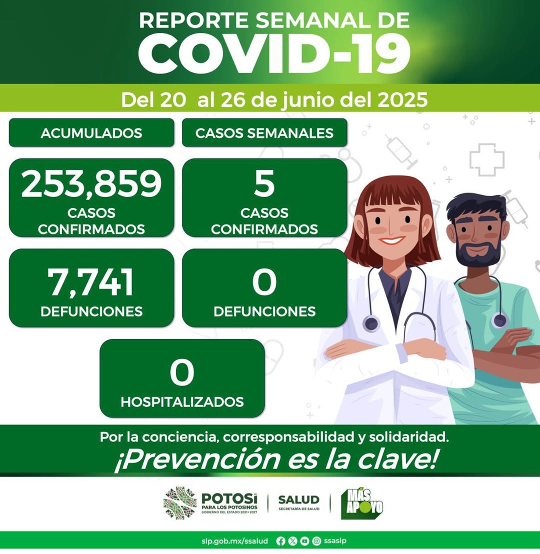 Del 20 al 26 de junio del 2025, se registraron cinco nuevos contagios de COVID-19 confirmando el Comité Estatal para la Seguridad en Salud y los Servicios de Salud 253 mil 859 casos totales de esta enfermedad. Las personas contagiadas del virus, cuentan con el esquema de vacunación completo el 40%, el otro 60% incompleto. Los estudios de los casos, detallan que en esta última semana se integran tres mujeres y dos hombres, en un rango de edad de 2 a 85 años.