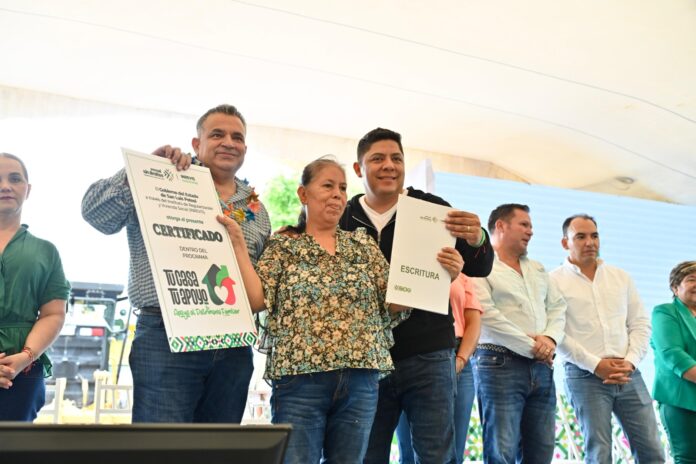 Gallardo Cardona agregó que en mayo de 2025 se realizó la primera entrega de predios a mil 500 beneficiarias y beneficiarios que cumplieron con los requisitos socioeconómicos establecidos por el Instituto de Regularización y Vivienda Social.