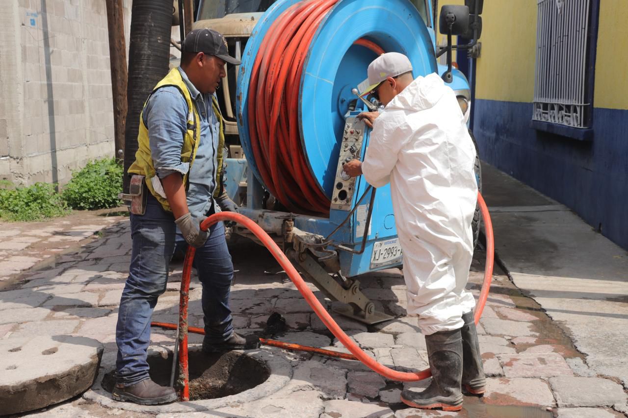 A través de la Dirección de Obras Públicas, este miércoles se realizan trabajos de desazolve y limpieza profunda en 44 pozos de drenaje pluvial ubicados en el Barrio de San Sebastián, con el objetivo de evitar encharcamientos y prevenir afectaciones mayores durante las precipitaciones que continuarán en las próximas semanas.