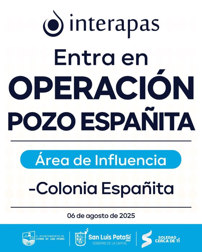 El organismo operador de agua potable, alcantarillado y saneamiento INTERAPAS informa que concluyeron los trabajos de instalación del nuevo motor y bomba en el pozo Españita, lo que permitirá restablecer gradualmente el suministro de agua en la colonia del mismo nombre.