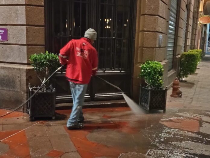 Esta intervención, realizada por la Coordinación de Imagen Urbana, forma parte de una estrategia para mantener en óptimas condiciones las áreas de mayor afluencia peatonal, eliminando residuos, manchas y bacterias que se acumulan por el constante tránsito diario.