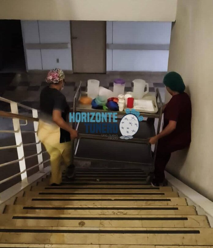 Trabajadores del Hospital del Niño y la Mujer, «Dr. Alberto López Hermosa» padecen desde el día de ayer la falta de elevadores en el nosocomio propiedad ahora del IMSS Bienestar.