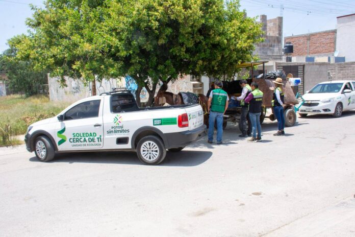 La Coordinación de Ecología municipal de Soledad de Graciano Sánchez continúa solicitando a las y los recolectores de residuos voluntarios, evitar el uso de equinos en sus labores particulares, ya que es una práctica prohibida en el municipio desde el año 2012 y derivado de ello, se realizan sanciones como el aseguramiento del animal y de las unidades infractoras, informó Yazmin Luna Barrios, titular de la dependencia.