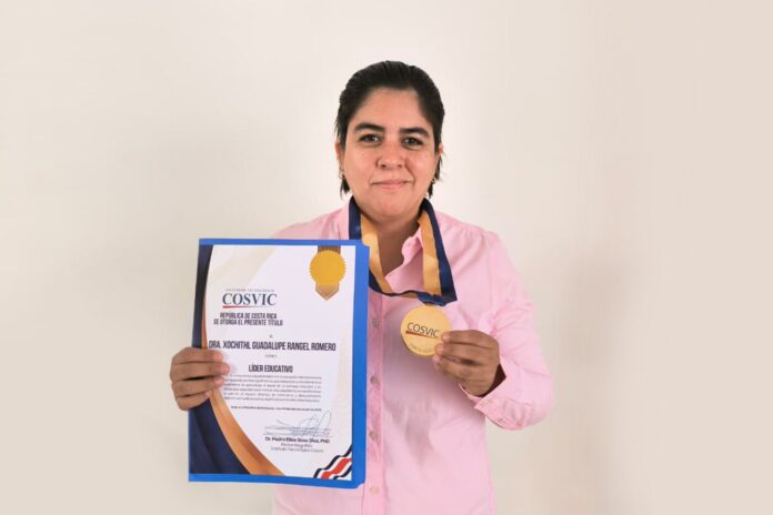 El Instituto Tecnológico COSVIC de Costa Rica otorgó a la doctora Xóchithl Guadalupe Rangel Romero, docente e investigadora de la Facultad de Derecho Abogado Ponciano Arriaga Leija de la Universidad Autónoma de San Luis Potosí (UASLP), la distinción “Líder educativo”.