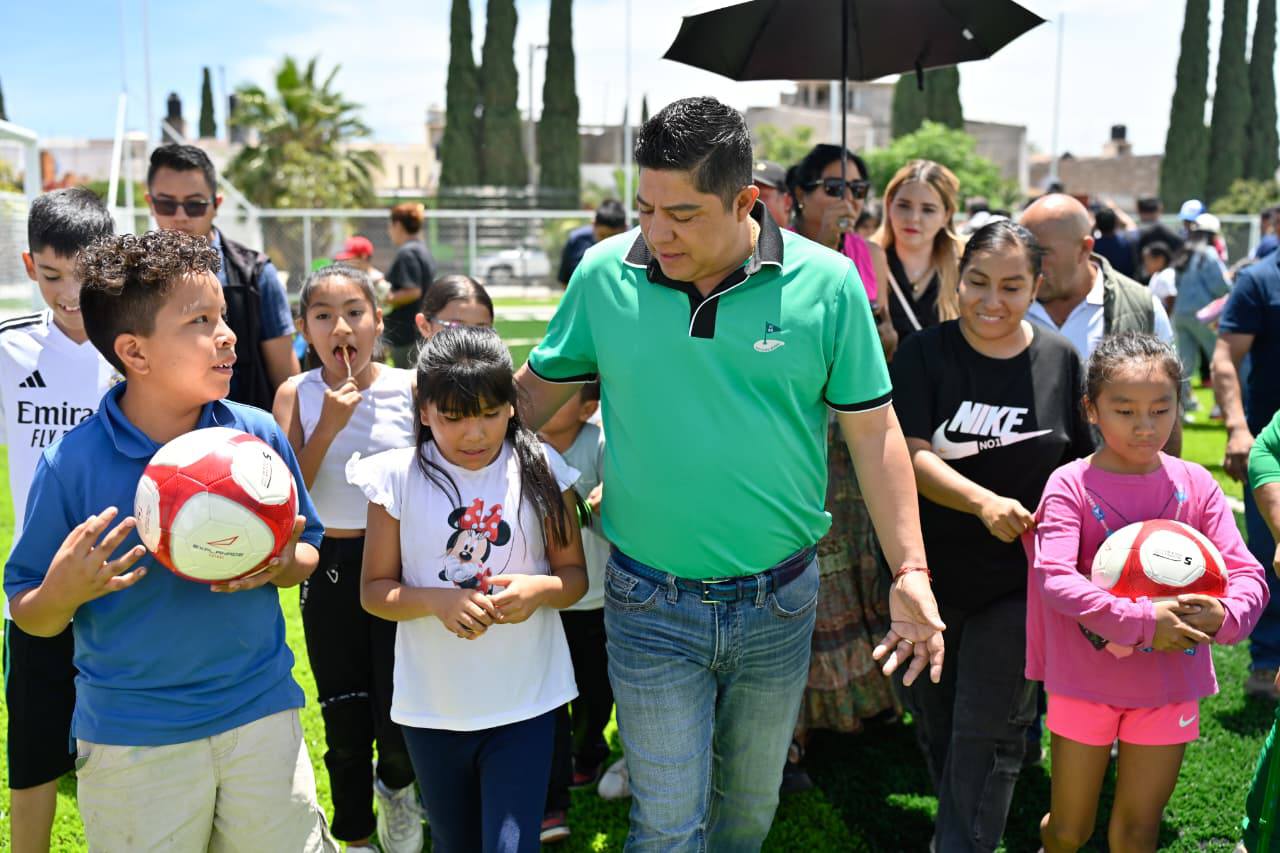 Ricardo Gallardo entrega área deportiva a familias de tres municipios