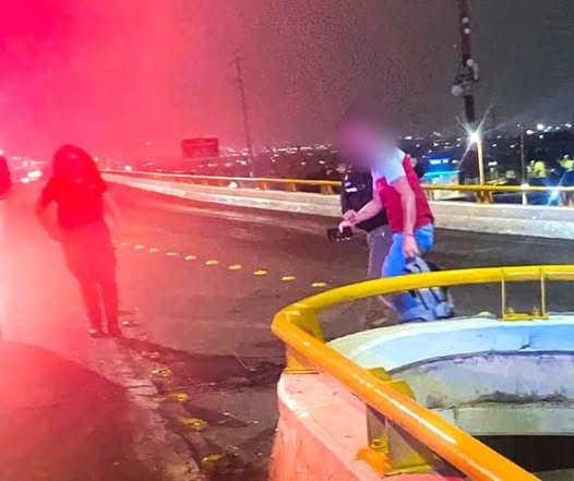 En la comandancia central de la corporación se recibió una llamada, en la cual se solicitó la presencia de la autoridad en las vialidades señaladas, precisamente arriba de un puente vehicular donde se observó a una persona que intentaba arrojarse desde lo alto.