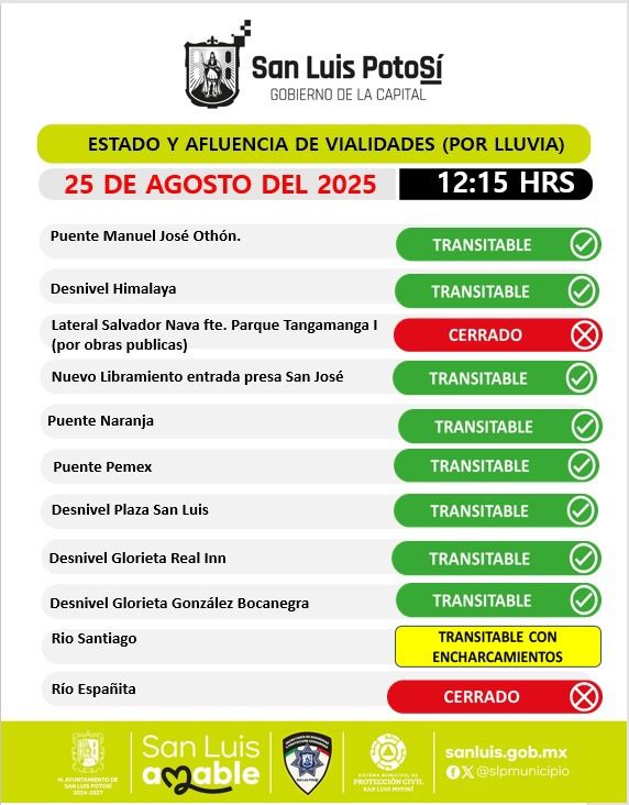 La Secretaría de Seguridad y Protección Ciudadana a través de sus direcciones operativas de Policía Vial, Guardia Municipal y Protección Civil, se mantiene atenta para brindar apoyo a la población ante el pronóstico de lluvia que prevalece para la Capital potosina.