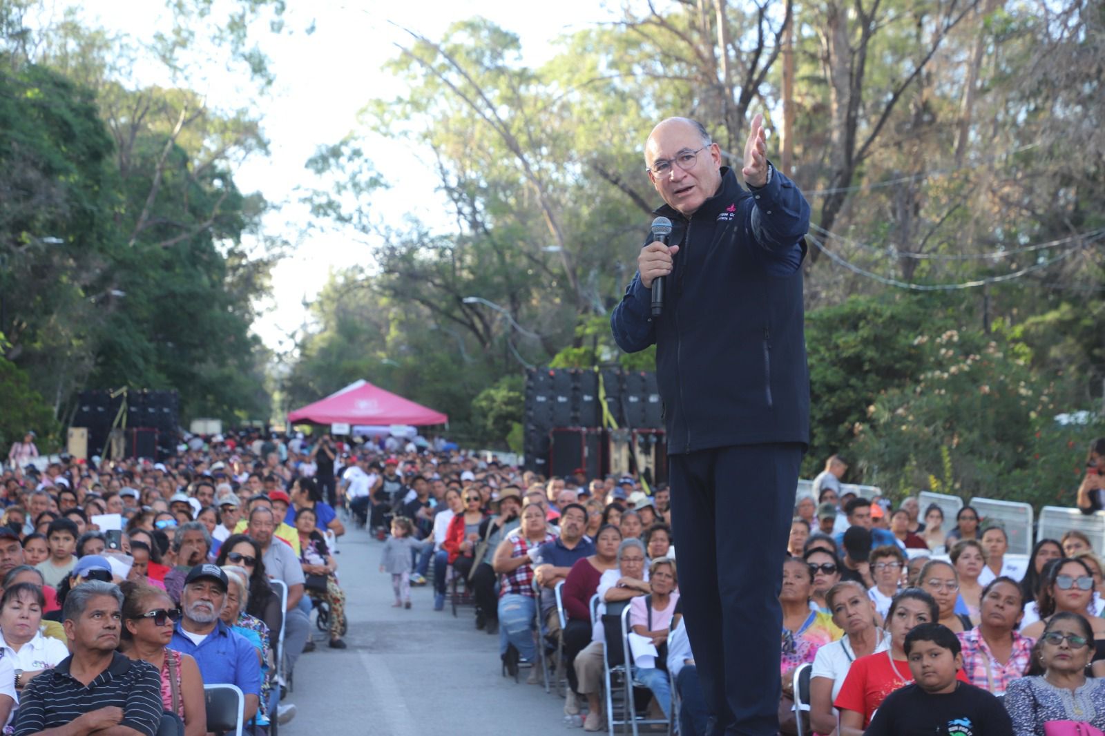 Ante la presencia de más de mil comerciantes, el Alcalde puso en marcha el programa “Impulsando Mi Tianguis”, una estrategia que busca regularizar el comercio en la vía pública, ordenar la instalación de los tianguis y fortalecer la relación entre autoridades y comerciantes, con ello, se abre un proceso de modernización y organización en beneficio de las familias que dependen de esta economía.