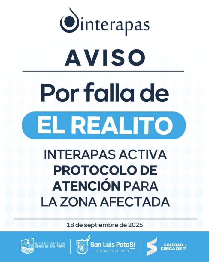La ciudadanía puede mantenerse informada a través de los canales oficiales de INTERAPAS, así como comunicarse a la línea Acuatel 444 123 64 00.