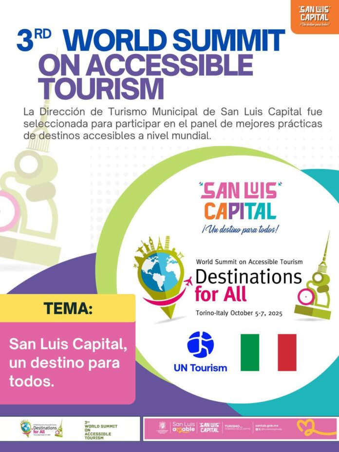 La Dirección de Turismo Municipal de San Luis Capital fue seleccionada para participar en el 3rd World Summit on Accessible Tourism, realizado en Turín, Italia, donde se reunirán representantes de destinos y organismos internacionales para compartir proyectos y políticas en favor de la accesibilidad turística.
