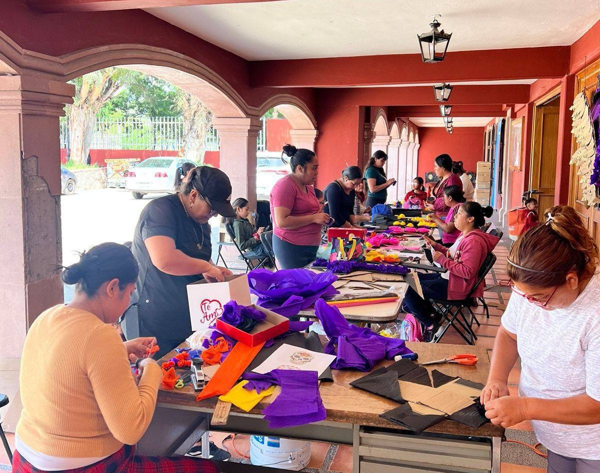 Con motivo del próximo 2 de noviembre, Día de Muertos, la Delegación La Pila del Ayuntamiento de San Luis Capital organiza talleres en sus oficinas municipales, donde personas de todas las edades elaboran flores de papel, calaveritas y otros adornos típicos que llenan de color esta tradicional festividad mexicana.