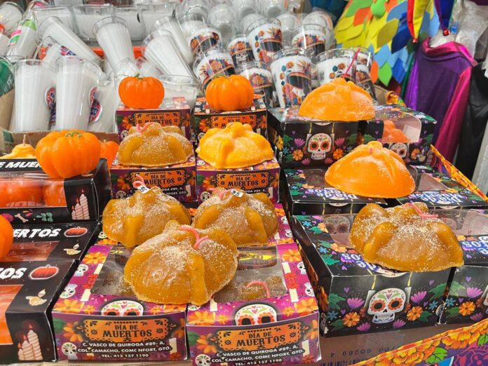 Durante el recorrido se observó gran movimiento en los pasillos dedicados a productos para altares, donde se ofrecen veladoras desde 15 hasta 40 pesos, flores, calaveras de azúcar y figuras alusivas al Día de Muertos.