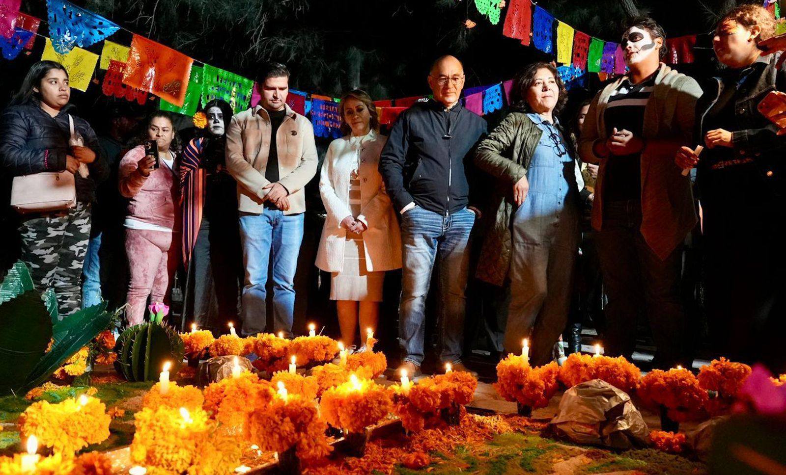 El Panteón del Saucito abrió sus puertas la noche de este viernes para dar inicio a las actividades conmemorativas del Día de Muertos en la Capital potosina, con el festival Razones para Recordar, que mantendrá este icónico espacio municipal abierto de forma continua por 48 horas. El Presidente Municipal Enrique Galindo Ceballos encabezó la ceremonia de apertura y posteriormente entregó los premios a los ganadores del concurso de altares, reconociendo el talento, la creatividad y el compromiso de quienes mantienen vivas las tradiciones mexicanas.