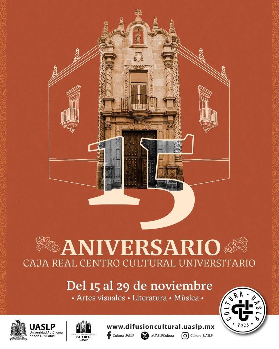 Las celebraciones continuarán el jueves 20 de noviembre a las 18:00 horas, cuando los grupos artísticos de la Secretaría de Difusión Cultural de la UASLP ofrecerán un concierto especial, durante el cual se develará una placa conmemorativa por los 15 años de Caja Real como Centro Cultural Universitario. En el mismo evento se presentará una publicación digital sobre la historia del edificio, que estará disponible para descarga gratuita.