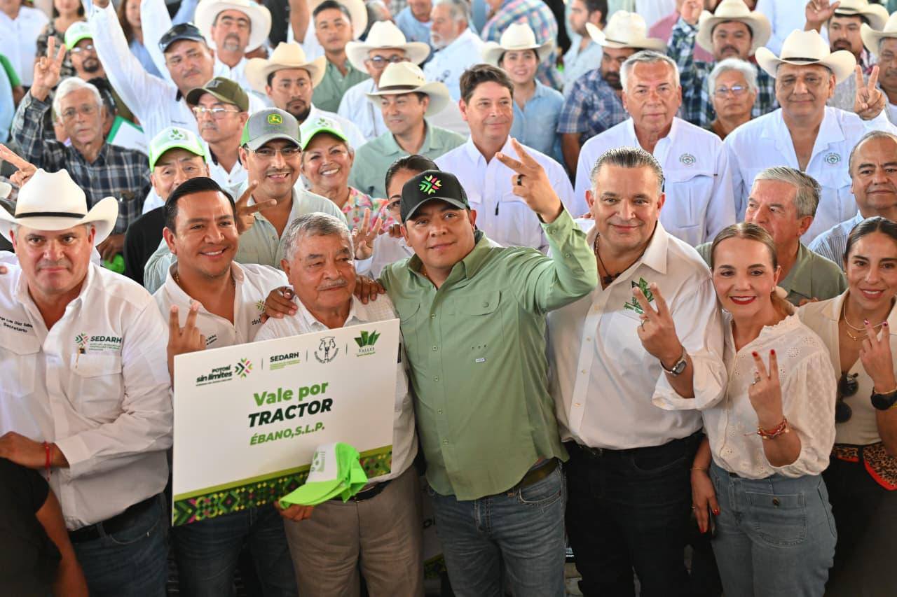 El campo potosino y las y los productores agropecuarios cuentan con un respaldo sin límites, resaltó el Gobernador de San Luis Potosí Ricardo Gallardo Cardona, al entregar más de cuatro mil 460 implementos agrícolas y para ganadería que incluyeron: tractores, molinos, paneles, remolques para ganado y de cama baja, con valor de más de 20 millones de pesos, a municipios de la huasteca potosina.