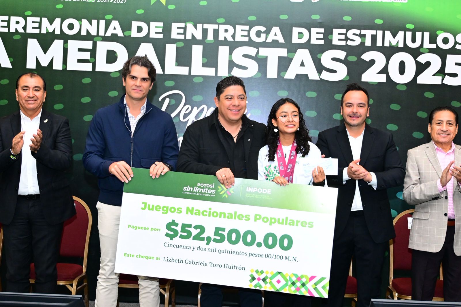 El Gobernador de San Luis Potosí Ricardo Gallardo Cardona, entregó estímulos económicos por 5 millones 160 mil pesos a 136 deportistas que obtuvieron medallas en los Nacionales y Paranacionales Conade 2025, así como en los Juegos Nacionales Populares, donde destacó que el deporte potosino vive su mejor etapa con el trabajo de las y los jóvenes y el apoyo sin límites de la administración.