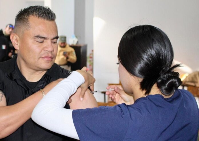 Este jueves, la jornada de inoculación finalizó en la comandancia municipal de la Guardia Civil Municipal, donde se aplicaron vacunas contra el neumococo e influenza a cerca de 200 agentes de la corporación, como parte de las acciones preventivas para reducir enfermedades respiratorias en el personal de seguridad, con el objetivo de garantizar la continuidad de sus funciones y la atención oportuna a la población.