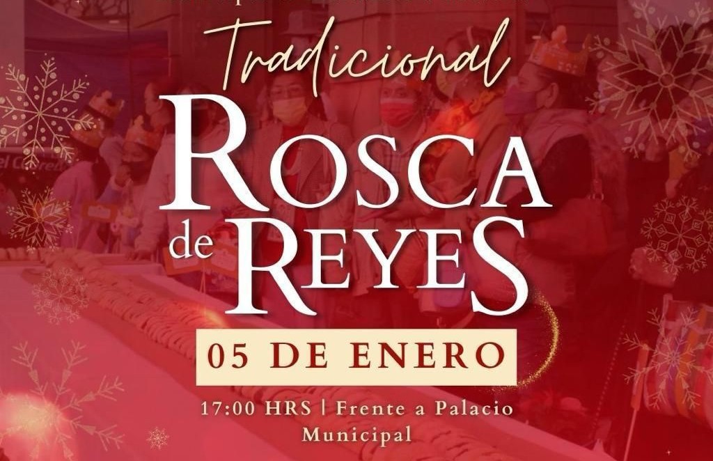 Mañana lunes 5 de enero, frente al Palacio Municipal, se compartirá la tradicional Rosca de Reyes como parte del cierre de las celebraciones decembrinas.