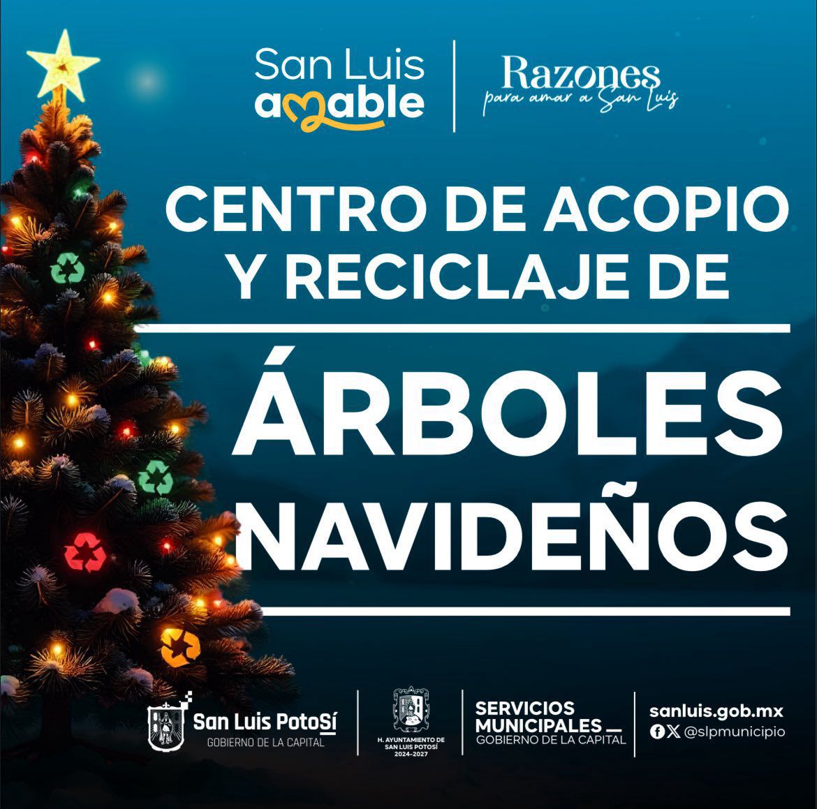 Con el fin de mantener limpia la ciudad, promover el cuidado del medio ambiente y darle un uso sustentable a los árboles navideños naturales, el Gobierno Municipal puso en servicio 7 centros de acopio ubicados en diversos puntos, donde serán convertidos en composta para el mantenimiento de áreas verdes.