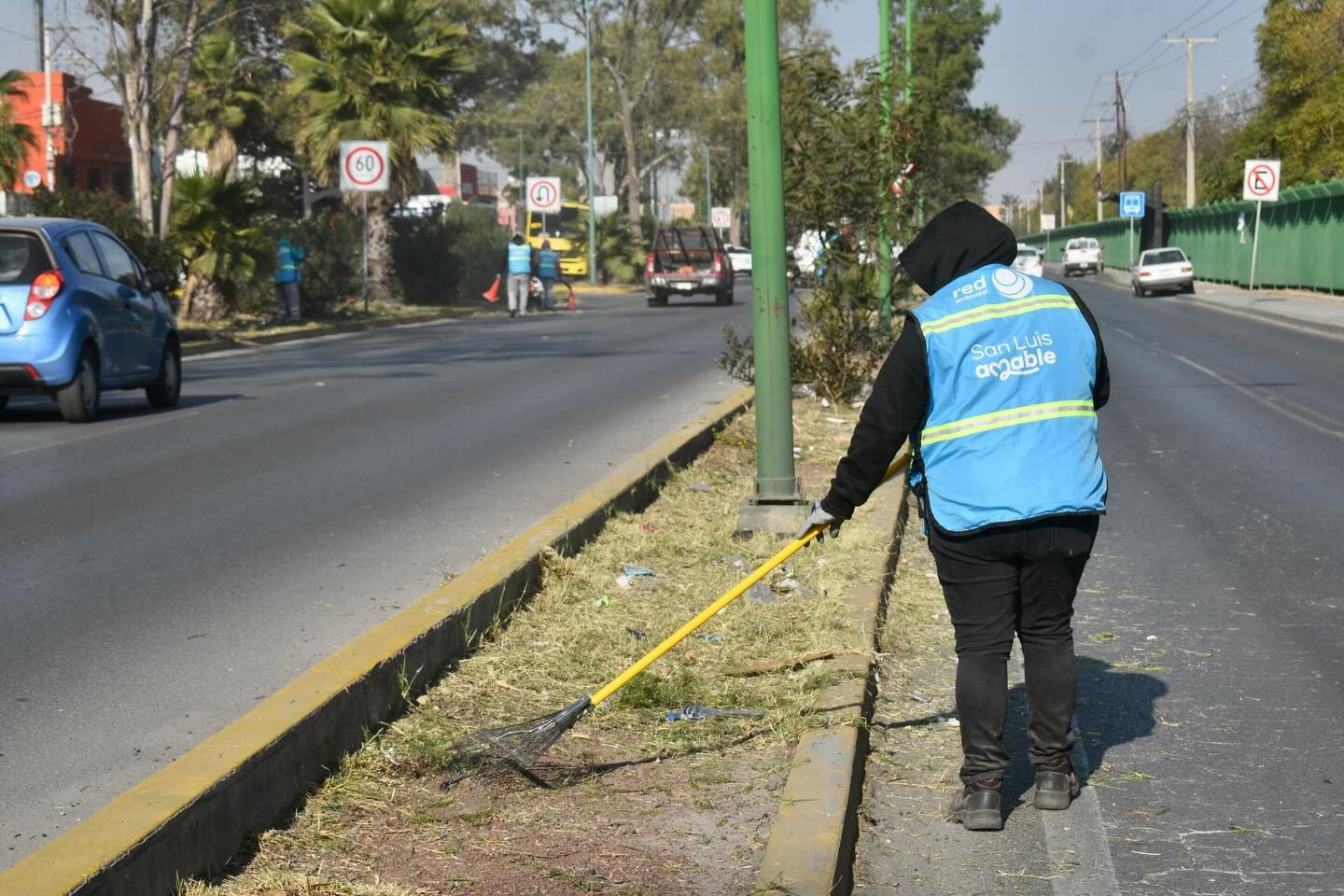 La Dirección de Servicios Municipales informó que, como parte del programa para el rescate de espacios públicos y rehabilitación de camellones en toda la ciudad, tocó el turno a esta vialidad, entre el Parque Tangamanga II y el Cementerio El Saucito.