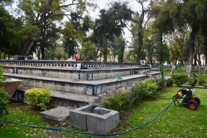 Por indicaciones del Alcalde Enrique Galindo Ceballos, personal de la Dirección de Servicios Municipales, a través del área de Parques y Jardines, realizó trabajos de limpieza integral en la fuente ubicada en la Alameda, como parte de las acciones permanentes de mantenimiento de los espacios públicos de la ciudad.
