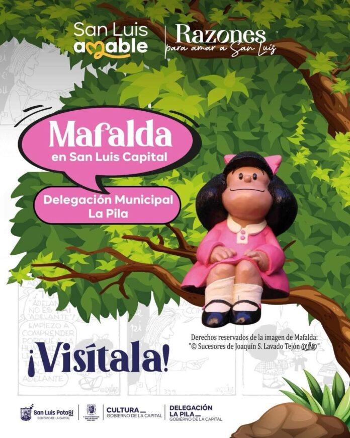 Mafalda, la icónica niña que ha acompañado a varias generaciones con su mirada reflexiva sobre el mundo y la humanidad, llegó temporalmente a la delegación La Pila gracias al programa “Mafalda se va de paseo por San Luis Capital”, promovido por el ayuntamiento. Esta visita forma parte de las festividades por el 30 aniversario de la demarcación municipal.