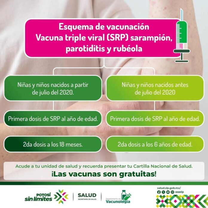 La jefa de Vacunología de los Servicios de Salud, Esmeralda Vanegas dijo que desde abril del 2024, el estado de San Luis Potosí ha intensificado las acciones de vacunación para prevenir sarampión y otras enfermedades, dirigidas principalmente a ampliar las coberturas y disminuir riesgos en infancia y adolescencia. Además, el Gobierno Estatal que encabeza el Gobernador Ricardo Gallardo Cardona, a través de la Secretaría de Salud, se sumó en julio del 2025 al Plan de Respuesta Rápida para Interrupción del Brote de Sarampión en el país, que dirige la Secretaría de Salud del Gobierno de México y la Organización Panamericana de la Salud (OPS/OMS).