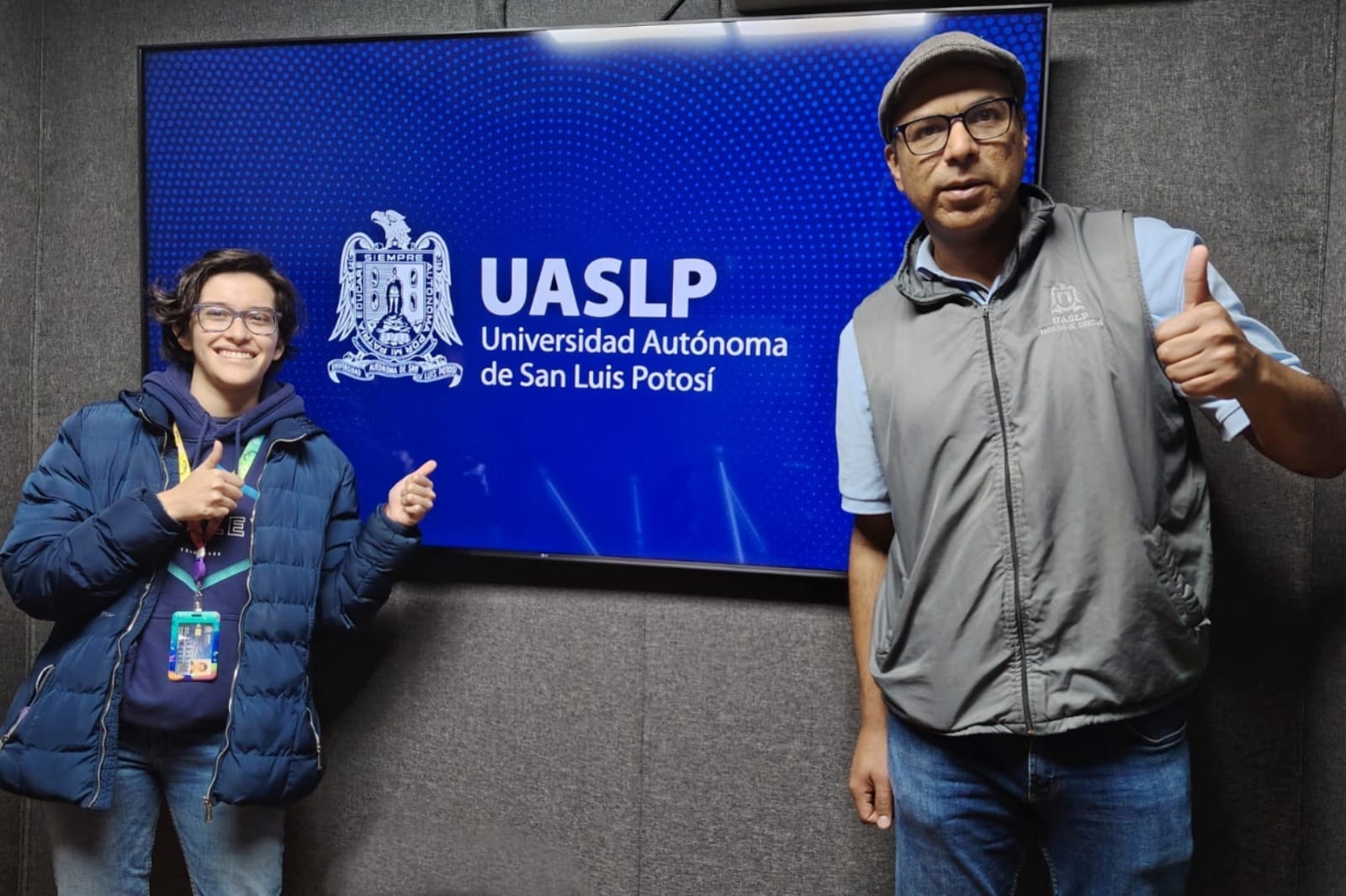 El doctor Eleazar Samuel Kolosovas Machuca, coordinador del Departamento de Difusión, junto con Adriana Monserrat Ledezma de la Rosa, estudiante de la Licenciatura en Física, extendieron la invitación al público potosino para asistir a esta actividad que se desarrollará de 9:00 a 14:00 horas, de manera presencial en el Campus Pedregal.
