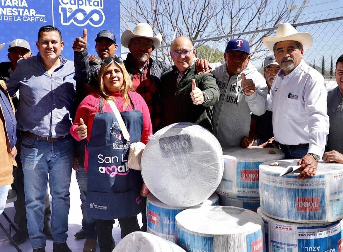 El alcalde de Enrique Galindo Ceballos, acompañado de miembros del Cabildo y Gabinete, entregó más de 400 rollos de cintilla de riego a 200 agricultores de la zona no delegacional de Peñasco, como parte del Programa Campo 4.0. Con esta acción, el 20 por ciento de los productores del municipio será beneficiado sin costo, con el objetivo de fortalecer la actividad agrícola y mejorar las condiciones de producción.