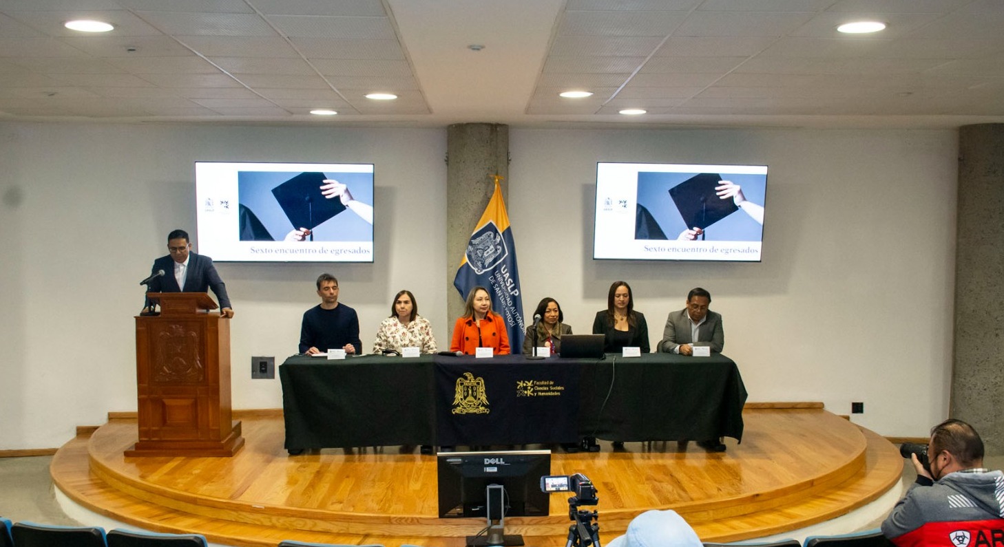 Este jueves 26 de febrero, la Facultad de Ciencias Sociales y Humanidades de la Universidad Autónoma de San Luis Potosí (UASLP) inició las actividades del Sexto Encuentro de Egresados, que concluirá el viernes 27. Durante dos jornadas, estudiantes y egresados de las seis licenciaturas participan en ponencias, conferencias magistrales, mesas de discusión y en la presentación de resultados de encuestas de seguimiento.