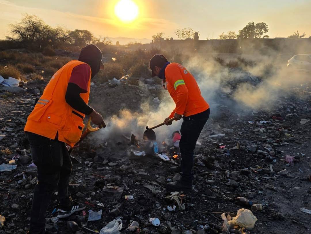 Gracias a denuncias ciudadanas, personal del área de Aseo Público atienden quema de basura en Los Vergeles.