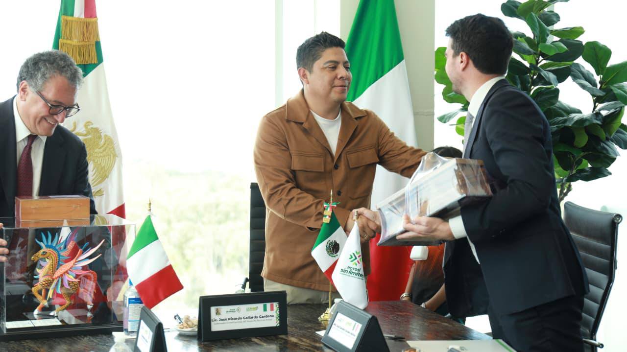 El Gobernador Ricardo Gallardo destacó que la consolidación de relaciones bilaterales con Italia es parte fundamental de la estrategia para impulsar el crecimiento económico del Estado, por lo que reiteró la disposición de su Gobierno para fortalecer alianzas con otras naciones en temas vinculados al desarrollo sostenible, la innovación tecnológica, la capacitación policiaca y el intercambio académico y cultural.